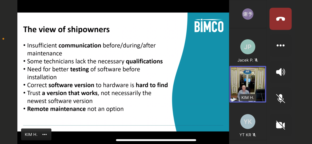 數(shù)字化技術(shù)及軟件議題,就船舶設(shè)計、船上信息關(guān)系系統(tǒng)的數(shù)字化信息化技術(shù)新進展,以及國際業(yè)界對船舶應(yīng)用數(shù)字化技術(shù)的建議等進行研討。IACS的SOLAS工作組主席Duncan Duffy發(fā)言表示,目前船舶應(yīng)用數(shù)字化技術(shù)仍面臨許多障礙,除了數(shù)字化軟件必須很好兼容船上各類不同設(shè)備系統(tǒng)外,還有船員是否能正確理解并正確操作信息系統(tǒng),否則將對船舶安全造成重大影響。IACS網(wǎng)絡(luò)系統(tǒng)技術(shù)專家AHN Jongwoo博士發(fā)言表示,IACS將進一步對船舶網(wǎng)絡(luò)的數(shù)據(jù)安全、數(shù)據(jù)傳輸質(zhì)量開展調(diào)研評估,目的是進一步研究完善相關(guān)行業(yè)標(biāo)準(zhǔn),保障數(shù)據(jù)的可靠性和有效性,相關(guān)工作成果將提交IMO。國際航運公會(BIMCO)技術(shù)專家 Aron Sorensen發(fā)言指出,船舶使用數(shù)字化技術(shù)和軟件,船東更關(guān)注實用性和成本問題,完整的售前演示、完善的售后服務(wù)體系(包括培訓(xùn)、維護),將有助于船東選擇滿意的數(shù)字化技術(shù)和軟件產(chǎn)品。