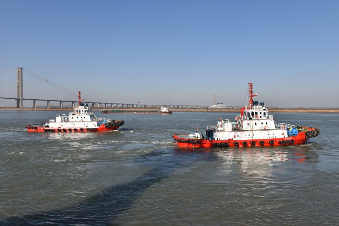 鎮(zhèn)江船廠為連云港徐圩港口投資集團(tuán)有限公司自主設(shè)計建造的4艘消拖兩用全回轉(zhuǎn)拖船——“徐圩港消3”、“徐圩港消4”、“徐圩港消7”、“徐圩港消8”,為江蘇博航船務(wù)有限公司設(shè)計建造的全回轉(zhuǎn)拖船——“博強(qiáng)拖8”完工交付,順利啟航。為唐山港曹妃甸拖船有限公司建造的4780kW全回轉(zhuǎn)拖船——“曹港31”順利吊裝下水。