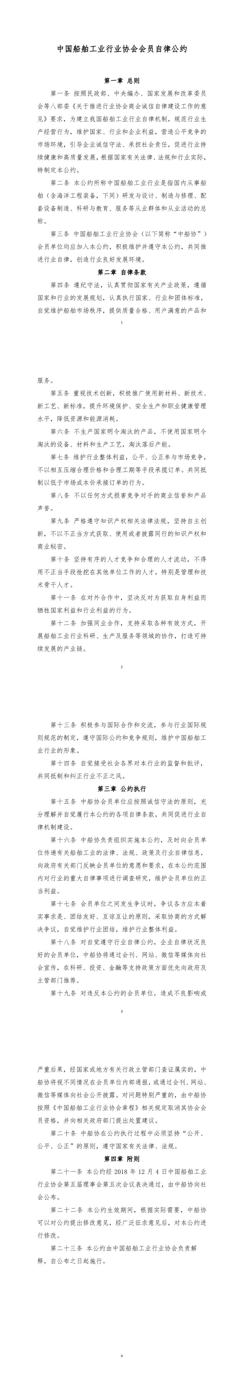 中國(guó)船舶工業(yè)行業(yè)協(xié)會(huì)會(huì)員自律公約