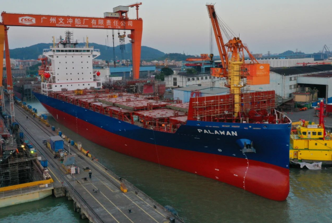 中船黃埔文沖1900TEU集裝箱船出塢