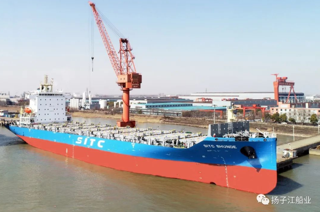 2月22日,揚子江船業(yè)集團(tuán)新?lián)P子造船為海豐國際建造的一艘1800TEU集裝箱船“SITC SHUNDE”(海豐順德)輪,從船廠碼頭解纜啟航,加入船東運營船隊。