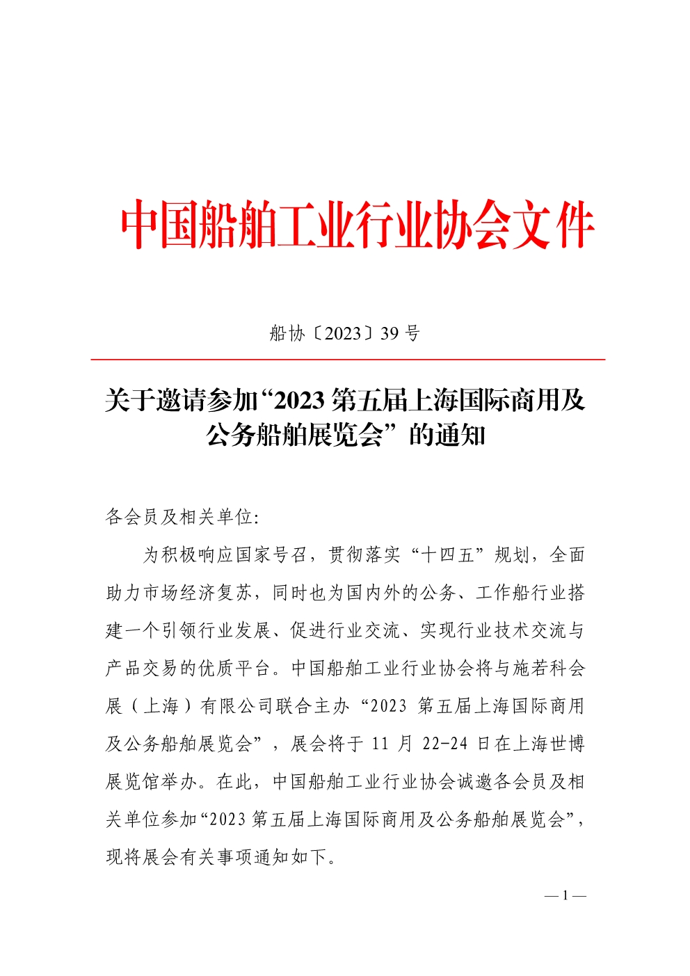 關(guān)于邀請參加“2023 第五屆上海國際商用及公務(wù)船舶展覽會”的通知