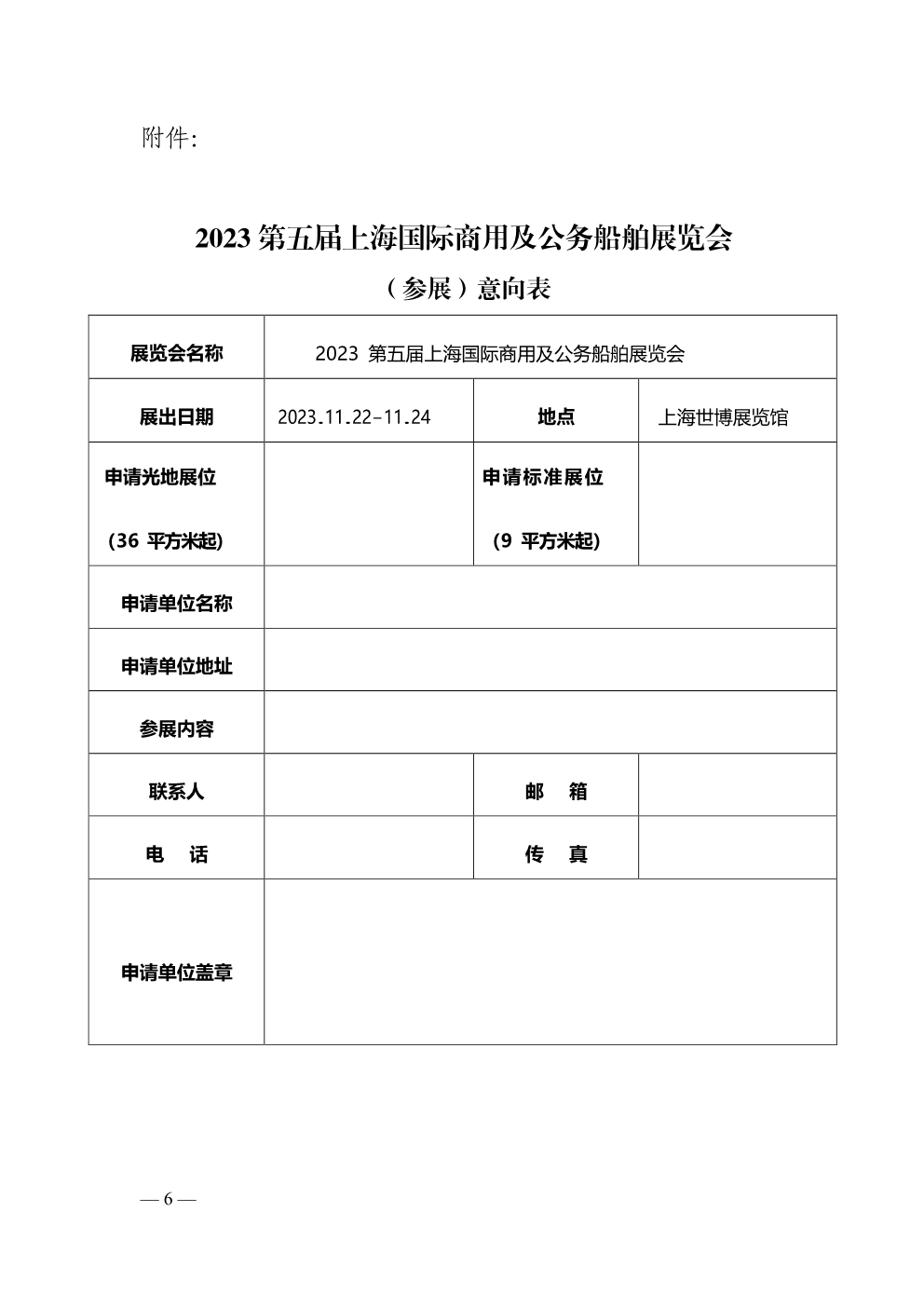 附件:2023第五屆上海國際商用及公務(wù)船舶展覽會(參展)意向表