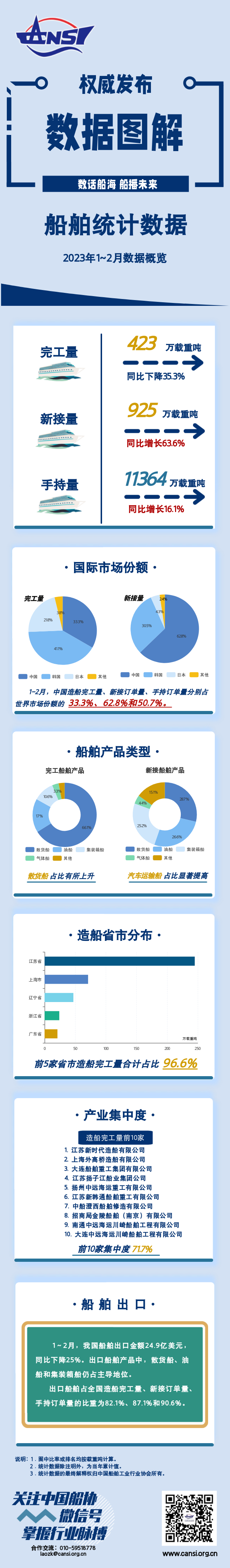 一圖讀懂丨2023年1~2月船舶統(tǒng)計數(shù)據(jù)