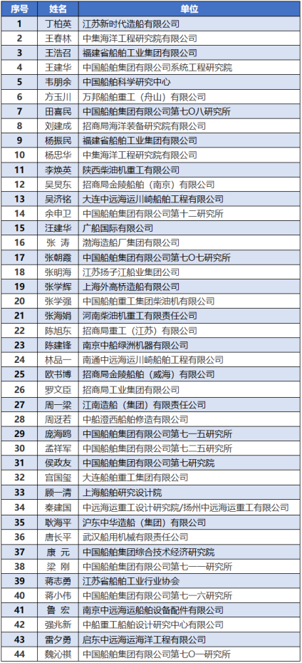 中國船舶工業(yè)行業(yè)協(xié)會(huì)標(biāo)準(zhǔn)化專家委員會(huì)委員名單