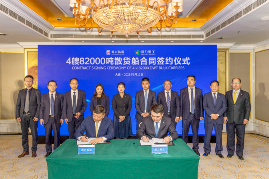 5月12日,恒力重工集團(tuán)旗下恒力造船(大連)有限公司分別舉行與海興航運(yùn)有限公司4艘82000載重噸散貨船建造合同,標(biāo)志著恒力重工正式進(jìn)入主流散貨船建造行列。同日,恒力造船(大連)有限公司與上海船舶研究設(shè)計(jì)院簽訂4艘82000載重噸(DWT)散貨船設(shè)計(jì)合同。