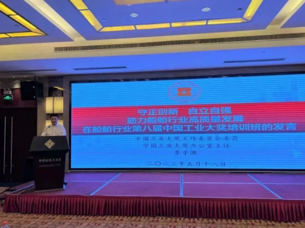 中國工業(yè)大獎工作委員會委員、中國工業(yè)大獎辦公室李子源主任為會議作了《守正創(chuàng)新 自立自強 助力船舶行業(yè)高質量發(fā)展》的講座。他重點圍繞中國工業(yè)大獎設立背景及獎項介紹、前七屆中國工業(yè)大獎實施情況、中國工業(yè)大獎申報評審流程和歷屆船舶獲獎企業(yè)和項目典型代表四個方面為參會的企業(yè)代表進行了專題培訓,并集中解答了參會代表提出的問題。