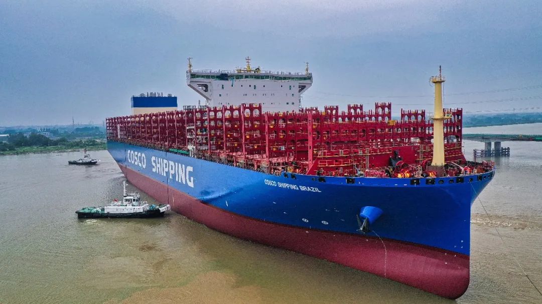 揚(yáng)州中遠(yuǎn)海運(yùn)重工首制14000TEU集裝箱船順利出塢