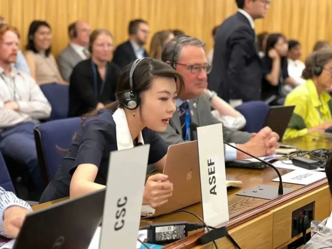 中國(guó)船協(xié)國(guó)際部、活躍造船專家聯(lián)盟(ASEF)理事謝予,中國(guó)船舶集團(tuán)有限公司第十一研究所海事部部長(zhǎng)、ASEF秘書長(zhǎng)汪璇,中國(guó)船舶集團(tuán)有限公司第十一研究所博士、ASEF溫室減排工作組專家張?jiān)漆裕?/span>ASEF參加此次MEPC80會(huì)議,并贊助IMO茶歇活動(dòng)。ASEF與挪威、韓國(guó)、日本、利比里亞聯(lián)合共提支持船上碳撲捉技術(shù)作為IMO減排戰(zhàn)略過渡技術(shù)方案的提案,被此次會(huì)議采納,并作為基礎(chǔ)文件,在ISWG-GHG16會(huì)間會(huì)做單獨(dú)議題進(jìn)行繼續(xù)討論。ASEF秘書長(zhǎng)汪璇在會(huì)間評(píng)論指出,作為代表國(guó)際造船工業(yè)的國(guó)際組織,ASEF將積極組織本組織成員開展技術(shù)研討、技術(shù)篩選,致力于為IMO減排戰(zhàn)略提供工業(yè)界的技術(shù)信息和可行方案。