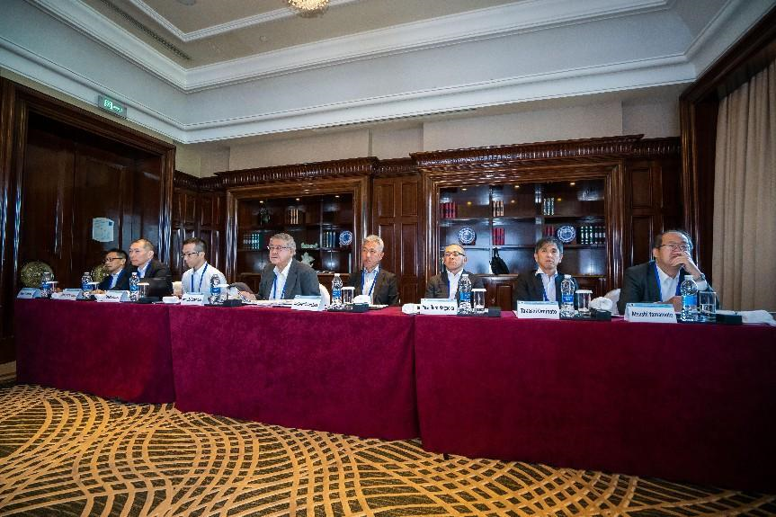 會(huì)議期間,日本、歐洲、中國、韓國、美國等四國五方專家圍繞各地區(qū)造船市場形勢、宏觀經(jīng)濟(jì)發(fā)展、原材料價(jià)格走勢以及勞動(dòng)力供需情況等內(nèi)容進(jìn)行交流討論。中國代表對油船、海工裝備(船)、汽車運(yùn)輸船三個(gè)船型的市場發(fā)展做了專題發(fā)言。日本、韓國和歐洲代表分別對散貨船、集裝箱船、LNG運(yùn)輸船、郵船及渡船等船型做了專題發(fā)言。歐洲代表介紹了IMO及歐洲等航運(yùn)、造船相關(guān)政策的新情況。會(huì)上,各國代表還針對全球不確定性的宏觀環(huán)境、劇烈波動(dòng)的航運(yùn)市場,以及更趨嚴(yán)格的減排政策進(jìn)行了研討。
