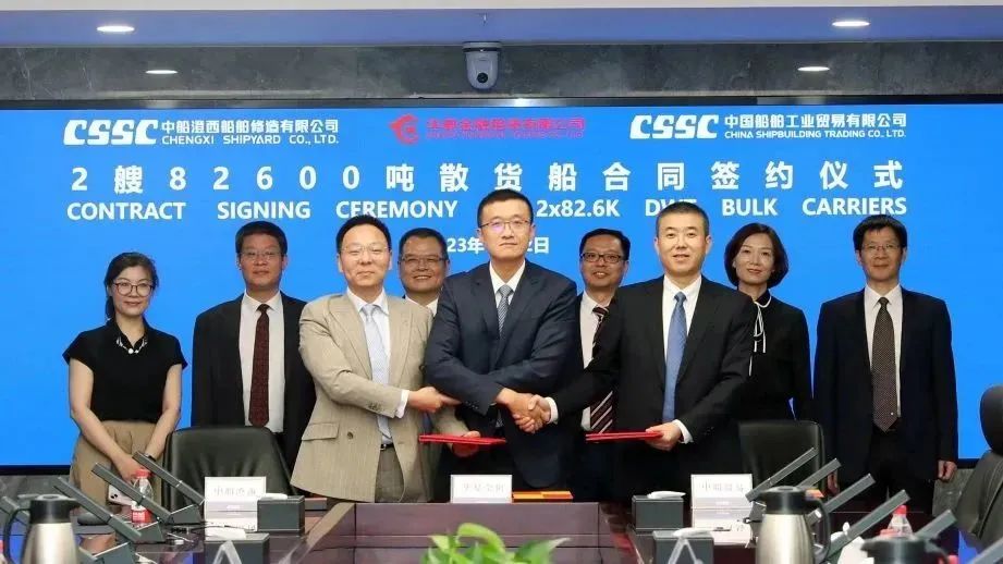 7月12日,中國(guó)船舶集團(tuán)旗下中國(guó)船舶股份子公司中船澄西聯(lián)合中國(guó)船舶工業(yè)貿(mào)易有限公司與華夏金融租賃有限公司簽訂了2艘82600噸散貨船建造合同。