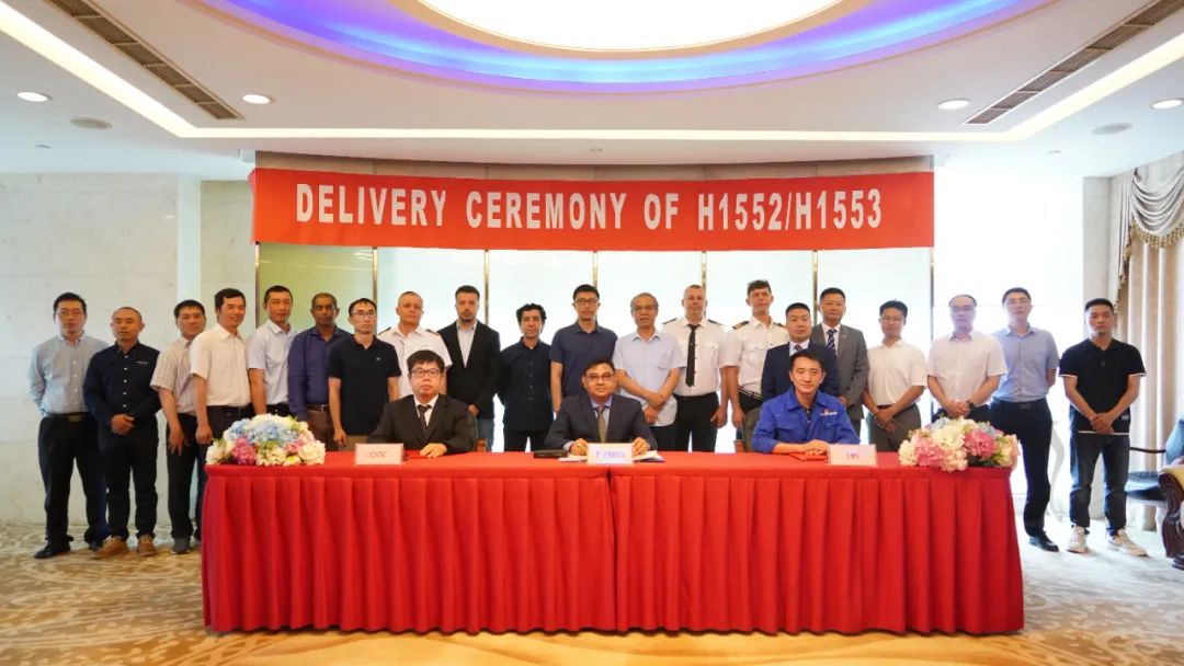 船東公司新造船經(jīng)理、中船貿(mào)易代表、公司營(yíng)銷部相關(guān)代表在交船文件上簽字,外高橋造船生產(chǎn)總監(jiān)李芝忠以及項(xiàng)目建造團(tuán)隊(duì)代表出席見證。