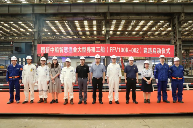 9月8日下午,國信中船智慧漁業(yè)大型養(yǎng)殖工船002號船建造啟動儀式在中國船舶集團(tuán)旗下中國重工子公司北海造船舉行。