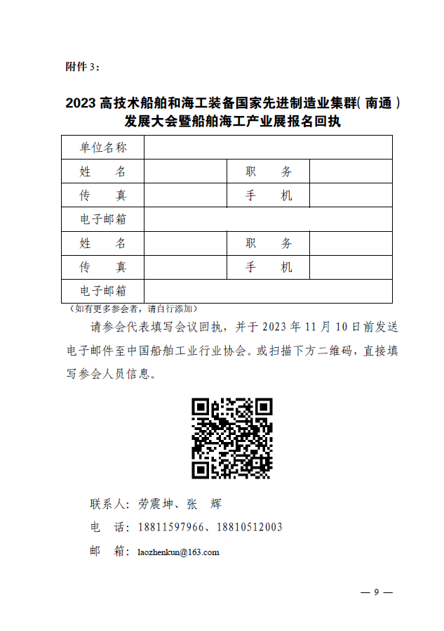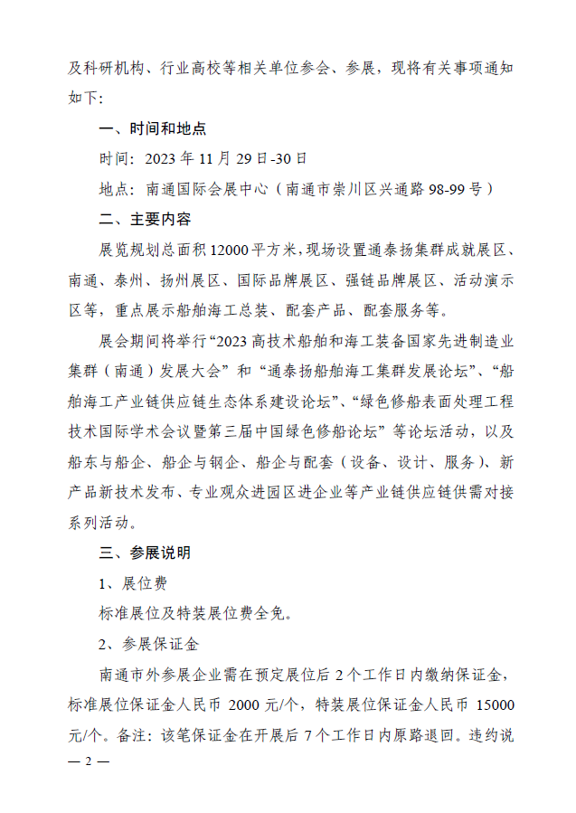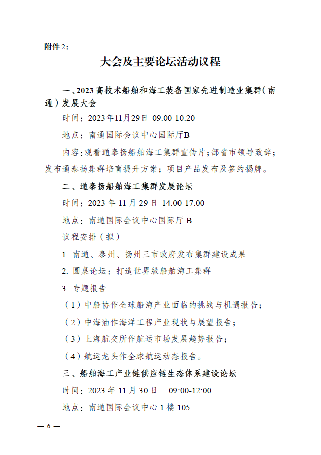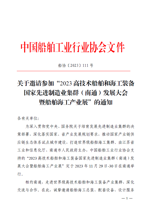 附件:關(guān)于邀請(qǐng)參加“2023 高技術(shù)船舶和海工裝備國家先進(jìn)制造業(yè)集群( 南通 ) 發(fā)展大會(huì)暨船舶海工產(chǎn)業(yè)展”的通知