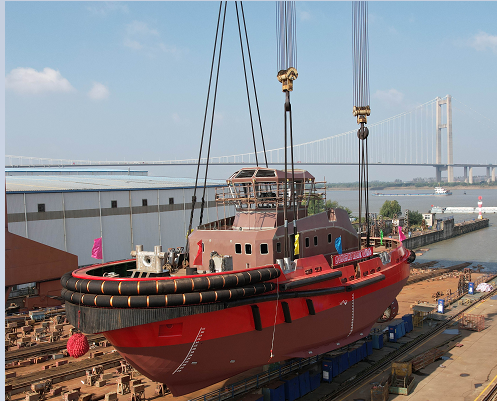 自主伴航智能拖輪在鎮(zhèn)江船廠順利下水