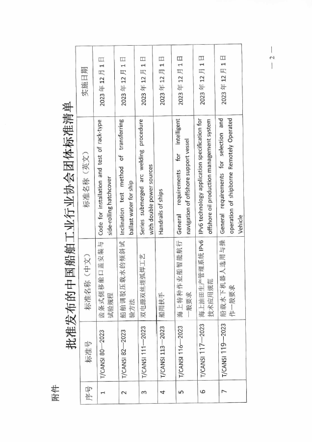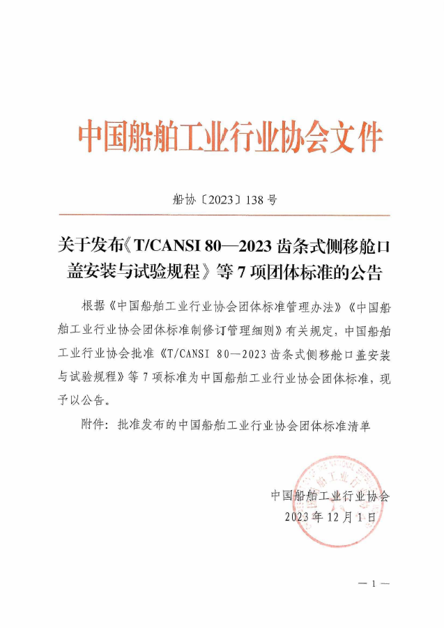 關(guān)于發(fā)布《T/CANSI80-2023 齒條式側(cè)移艙口蓋安裝與試驗(yàn)規(guī)程》等7項(xiàng)團(tuán)體標(biāo)準(zhǔn)的公告