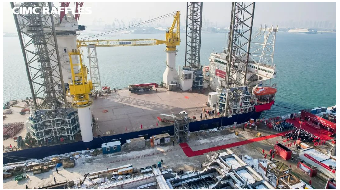 中集來(lái)福士自主設(shè)計(jì)建造的我國(guó)最新一代風(fēng)電安裝船“博強(qiáng)3060”交付