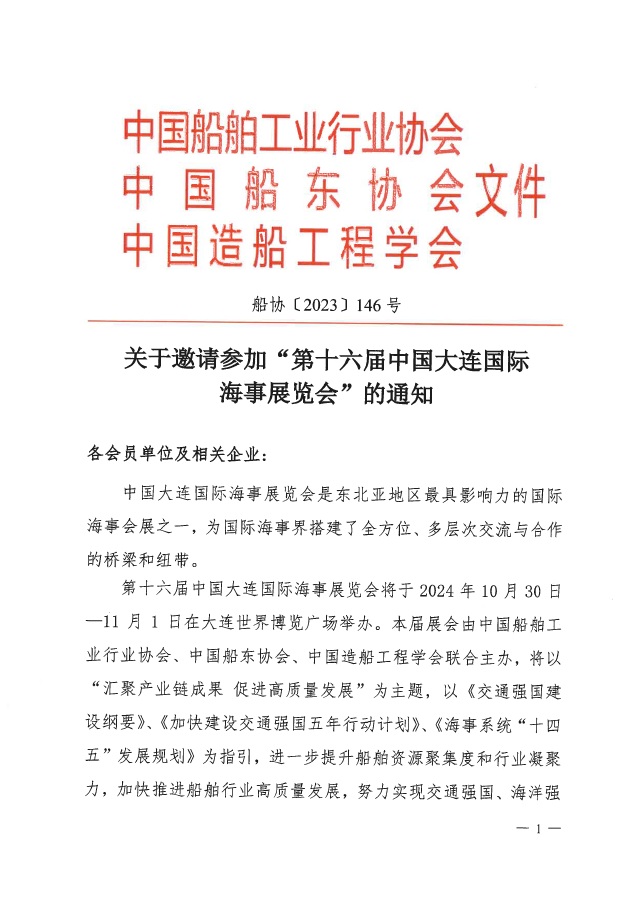 關(guān)于邀請參加“第十六屆中國大連國際海事展覽會”的通知