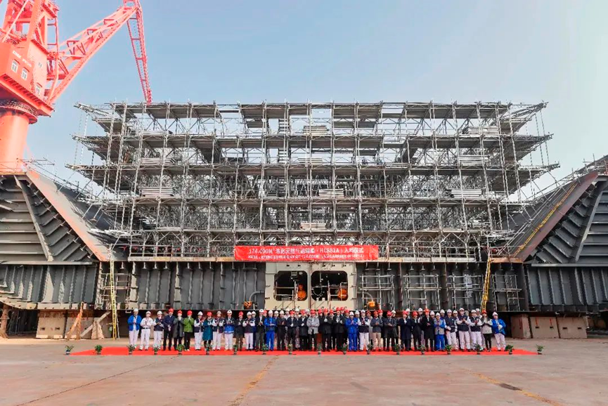 1月5日,滬東中華為中海油項(xiàng)目建造的第二艘17.4萬(wàn)方LNG船(H1881A)順利入塢,公司副總經(jīng)理遲本斌、翁紅兵,LNG副總建造師張少鷹等領(lǐng)導(dǎo)出席儀式。