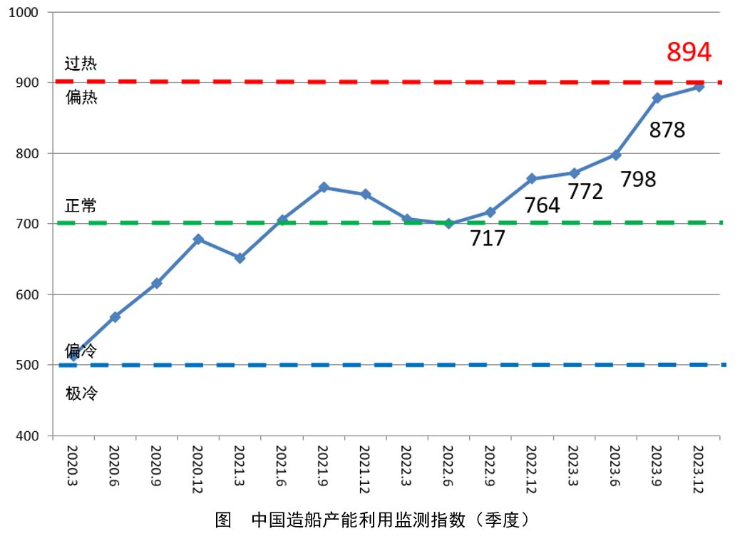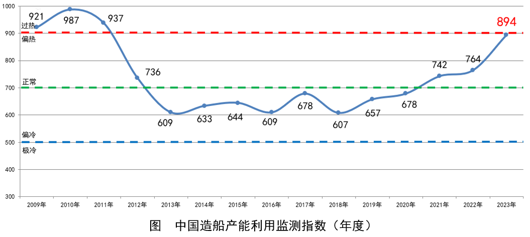 2023年中國(guó)造船產(chǎn)能利用監(jiān)測(cè)指數(shù)接近900點(diǎn)