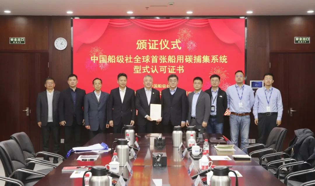 七一一所獲CCS全球首張船用碳捕集系統(tǒng)型式認(rèn)可證書