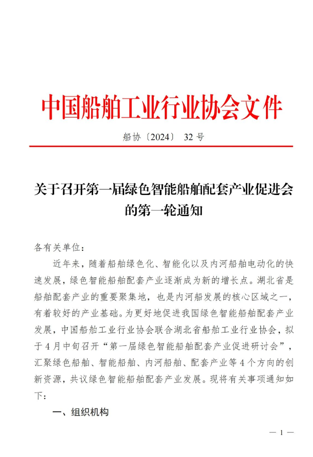 關于召開第一屆綠色智能船舶配套產業(yè)促進會的第一輪通知