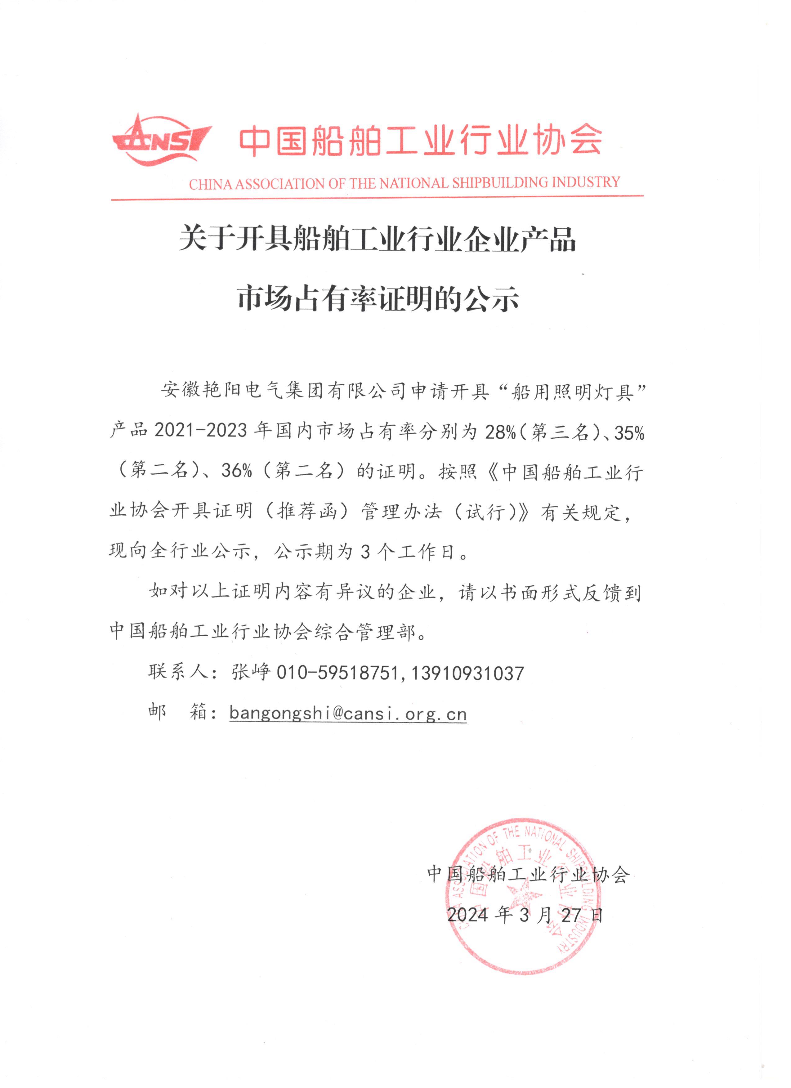 關(guān)于開(kāi)具船舶工業(yè)行業(yè)企業(yè)產(chǎn)品市場(chǎng)占有率證明的公示