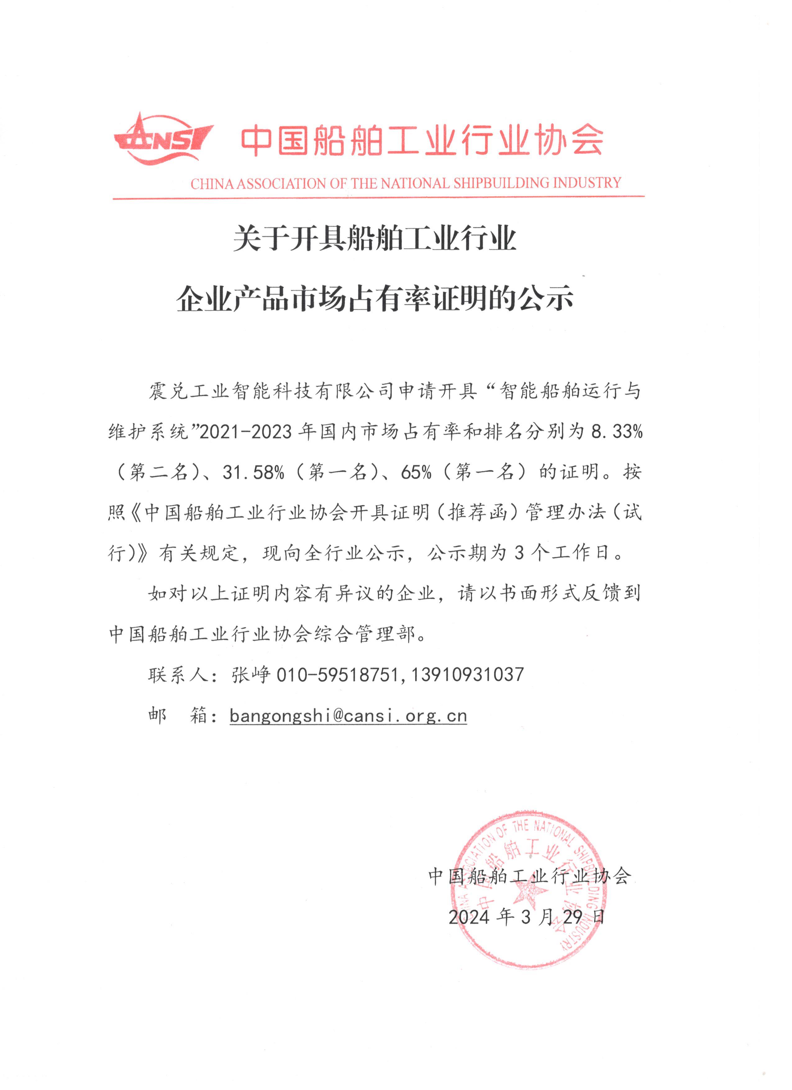 關于開具船舶工業(yè)行業(yè)企業(yè)產品市場占有率證明的公示