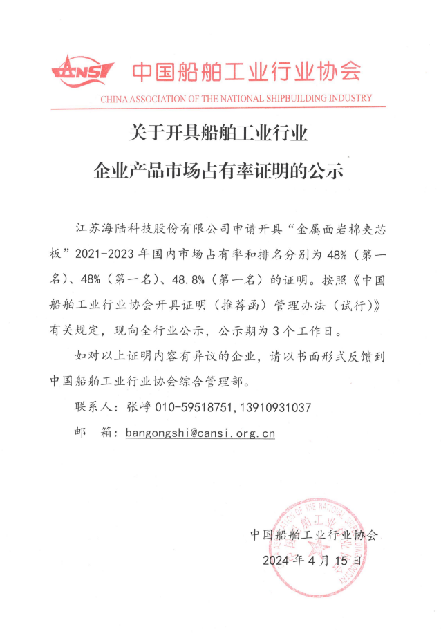 關(guān)于開(kāi)具船舶工業(yè)行業(yè)企業(yè)產(chǎn)品市場(chǎng)占有率證明的公示