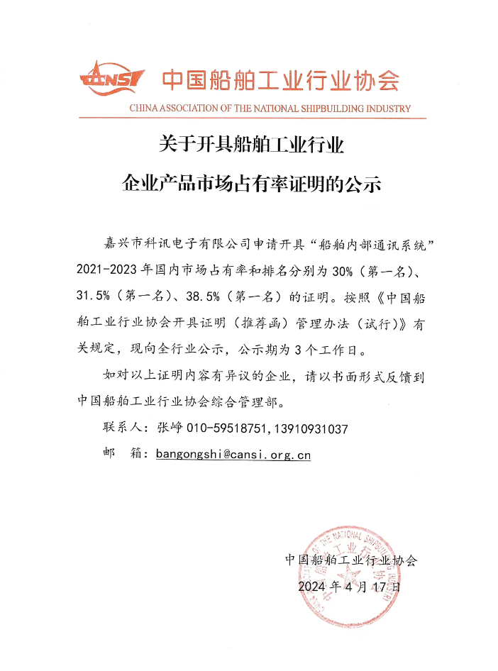 關(guān)于開具船舶工業(yè)行業(yè)企業(yè)產(chǎn)品市場(chǎng)占有率證明的公示