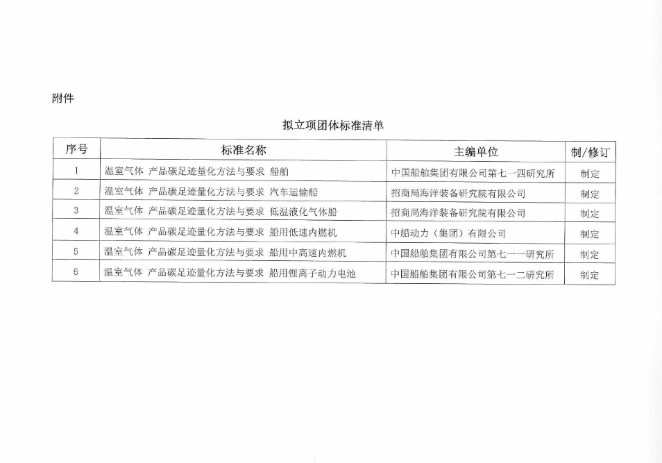 中國船舶工業(yè)行業(yè)協(xié)會(huì)關(guān)于《溫室氣體產(chǎn)品足跡量化方法與要求船舶》等6項(xiàng)標(biāo)準(zhǔn)的立項(xiàng)公示
