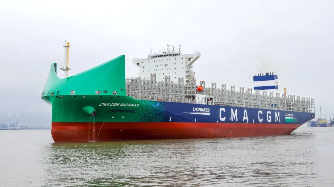 5月23日,由中國船舶集團(tuán)旗下滬東中華聯(lián)合中船貿(mào)易為法國達(dá)飛集團(tuán)建造的13000TEU液化天然氣(LNG)雙燃料動力集裝箱船系列4號船“CMA CGM SAOPAULO”號,在滬東中華長興島廠區(qū)命名交付。南美洲東海岸航線又將新添一艘中國“智”造的新一代綠色環(huán)保、高效節(jié)能型集裝箱船,為達(dá)飛集團(tuán)箱船船隊綠色轉(zhuǎn)型發(fā)展貢獻(xiàn)新的中國船舶動能。