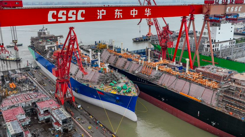這是繼3月24日,再度呈現(xiàn)四船并建、兩船出塢、兩船起浮的盛景,且塢期同比縮短了近20%,達(dá)到世界先進(jìn)水準(zhǔn)。標(biāo)志著滬東中華大型LNG船塢內(nèi)四船并列半串聯(lián)建造模式進(jìn)入了批量化、常態(tài)化、標(biāo)準(zhǔn)化、節(jié)拍化新階段,LNG船產(chǎn)能倍增戰(zhàn)略邁向全面提速新境界。