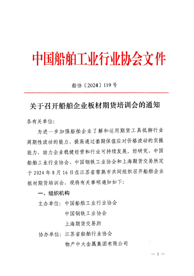 關于召開船舶企業(yè)板材期貨培訓會的通知