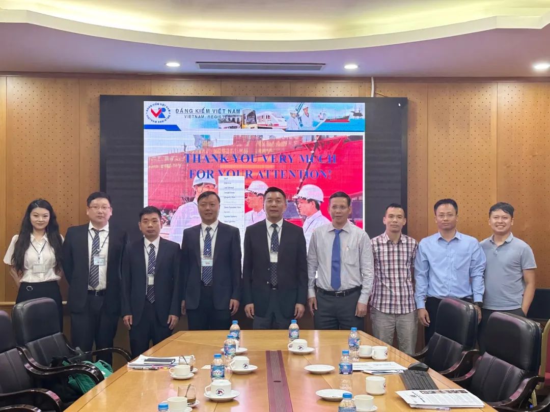 7月8日,調(diào)研組一行訪問(wèn)越南船級(jí)社(Vietnam Register,VR)總部,VR船舶和海上結(jié)構(gòu)物部部長(zhǎng)PHAM HAI BANG等領(lǐng)導(dǎo)出席座談交流。