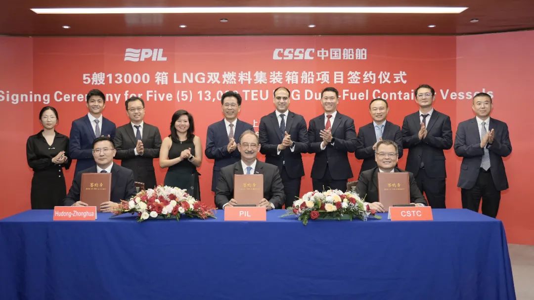 8月19日,中國(guó)船舶集團(tuán)有限公司旗下滬東中華造船(集團(tuán))有限公司聯(lián)合中國(guó)船舶工業(yè)貿(mào)易有限公司與太平船務(wù)有限公司正式簽訂5艘13000TEU液化天然氣(LNG)雙燃料動(dòng)力大型集裝箱船建造合同。這是繼今年6月簽訂4艘14000TEU甲醇燃料預(yù)留大型集裝箱船訂單后,滬東中華承接的又一批大型箱船訂單。至此,滬東中華已累計(jì)完工和手持大型集裝箱訂單近百艘,位居全球各大船廠前列,持續(xù)鞏固其在超大型、大型集裝箱船建造領(lǐng)域的領(lǐng)軍地位。