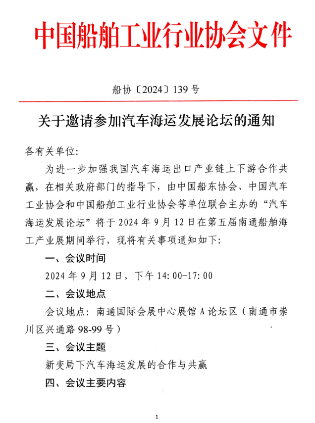 關(guān)于邀請參加汽車海運發(fā)展論壇的通知