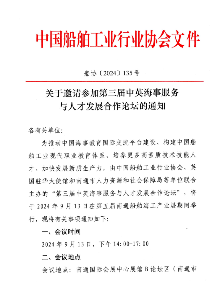 第三屆中英海事服務(wù)與人才發(fā)展合作論壇的通知