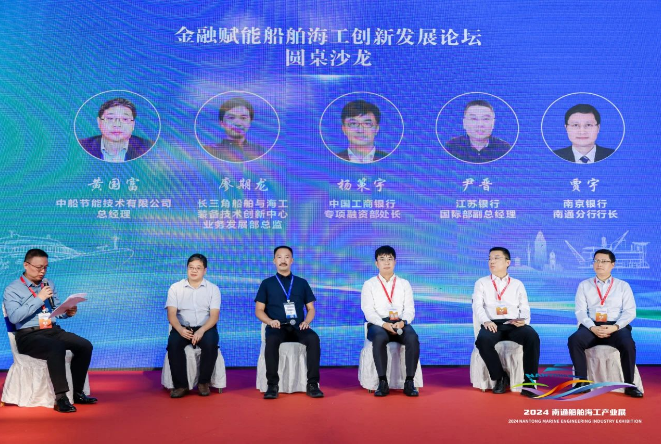 在圓桌論壇環(huán)節(jié),中船節(jié)能技術(shù)有限公司總經(jīng)理黃國富、長三角船舶與海工裝備技術(shù)創(chuàng)新中心業(yè)務(wù)發(fā)展部總監(jiān)廖期龍、中國工商銀行專項(xiàng)融資部資產(chǎn)融資處處長楊策宇、江蘇銀行總行國際部副總經(jīng)理尹晉、南京銀行南通分行行長賈宇圍繞金融行業(yè)與船舶行業(yè)加強(qiáng)合作、金融行業(yè)支持船舶工業(yè)綠色轉(zhuǎn)型等共同關(guān)心的話題進(jìn)行了熱烈探討。嘉賓們表示,船海企業(yè)面對綠色、低碳的發(fā)展趨勢,加快全產(chǎn)業(yè)鏈發(fā)展,要不斷強(qiáng)鏈補(bǔ)鏈延鏈,對接國際先進(jìn)技術(shù),擁抱新技術(shù)、新未來,加快提升船舶工業(yè)核心技術(shù),形成強(qiáng)大“護(hù)城河”。金融機(jī)構(gòu)要運(yùn)用供應(yīng)鏈思維,不斷支持綠色、智能船舶產(chǎn)業(yè)鏈完善,為船海企業(yè)當(dāng)參謀提建議,提供匹配度高的綜合產(chǎn)品體系,助力船海企業(yè)具備更強(qiáng)大抗風(fēng)險(xiǎn)能力,實(shí)現(xiàn)跨越周期的更好發(fā)展。