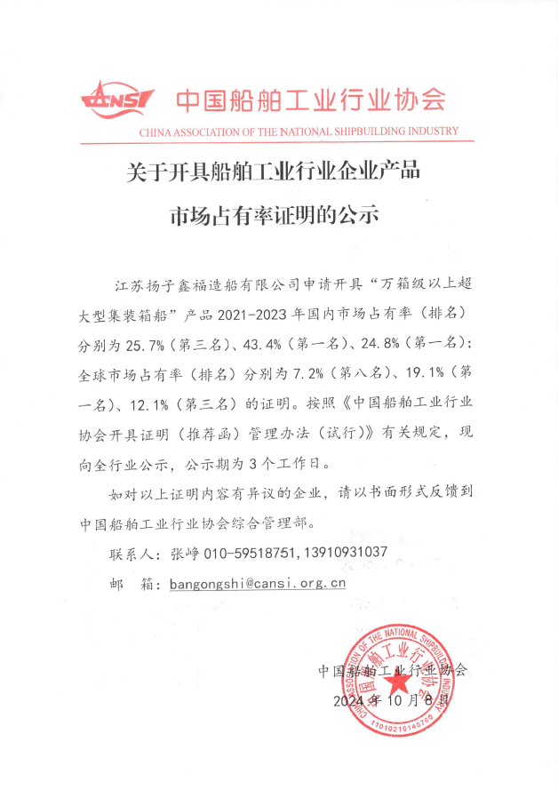 關(guān)于開(kāi)具船舶工業(yè)行業(yè)企業(yè)產(chǎn)品市場(chǎng)占有率證明的公示