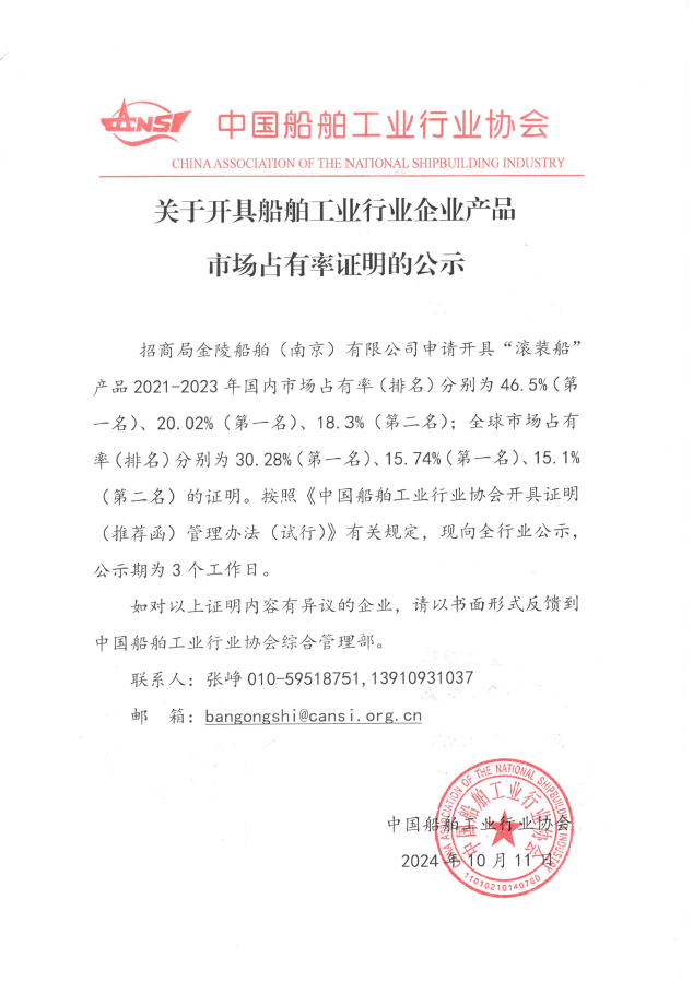 關(guān)于開具船舶工業(yè)行業(yè)企業(yè)產(chǎn)品市場占有率證明的公示