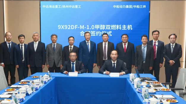 中遠(yuǎn)海運重工與中船動力簽訂甲醇雙燃料主機(jī)合同