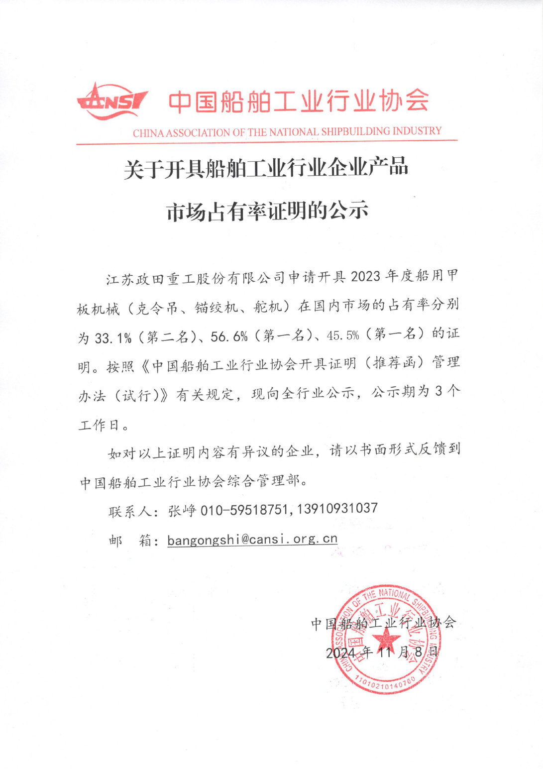 關(guān)于開具船舶工業(yè)行業(yè)企業(yè)產(chǎn)品市場(chǎng)占有率證明的公示