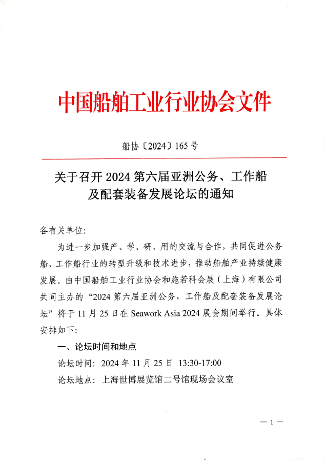 關(guān)于召開2024第六屆亞洲公務(wù)、工作船及配套裝備發(fā)展論壇的通知
