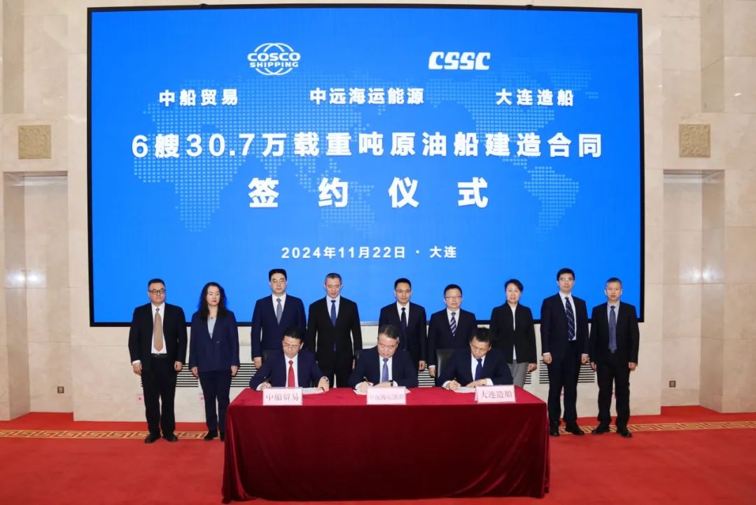 1月22日,中國船舶大連造船聯(lián)合中船貿(mào)易與中遠海運能源成功簽署6艘30.7萬噸原油船建造合同,本項目將懸掛五星紅旗,采用人民幣結(jié)算,總計合同金額超57億元。