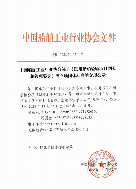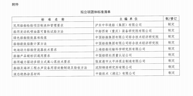 中國船舶工業(yè)行業(yè)協(xié)會關(guān)于《民用船舶檢驗項目制表和管理要求》等9項團(tuán)體標(biāo)準(zhǔn)的立項公示