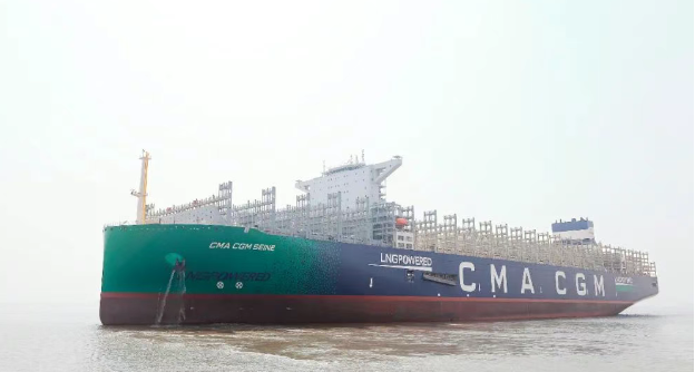 該船是法國達飛集團在公司訂造的4艘24000TEU級雙燃料動力集裝箱船系列的首船,也是公司繼2020年9月完工交付全球首創(chuàng)23000TEU雙燃料動力集裝箱船的升級優(yōu)化型綠色環(huán)保超大型集裝箱船。其總長399米,型寬61.3米,型深33.5米,設(shè)計吃水14.5米??沙休d22萬噸貨物,一次裝下23872個集裝箱,可運載2200個標準冷藏集裝箱,最大堆箱層數(shù)達24層,相當(dāng)于22層樓高度,是新一代海上“綠巨人”和“帶貨王”。這是公司首次在項目首制船上實現(xiàn)“兩合一”試航目標,為持續(xù)縮短試航周期,提高生產(chǎn)效率積累了經(jīng)驗,為后續(xù)船順利建造打好了基礎(chǔ)。