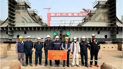 近日,新時代造船1#295000噸油船船體結(jié)構(gòu)開始進(jìn)塢合攏組裝。