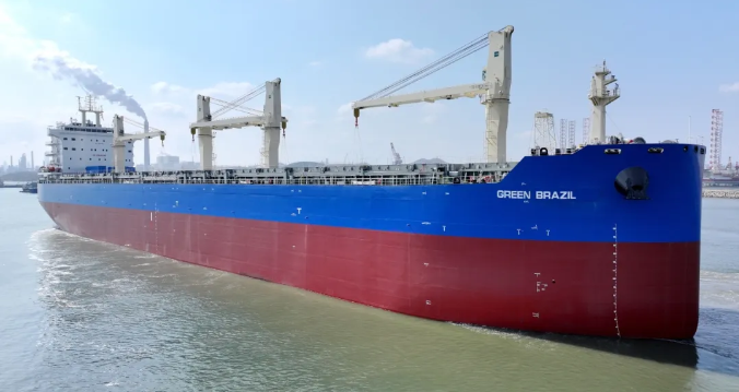3月21日,大連中遠(yuǎn)海運重工為交銀金租建造的77000噸多用途紙漿船“GREEN BRAZIL”輪命名交付。