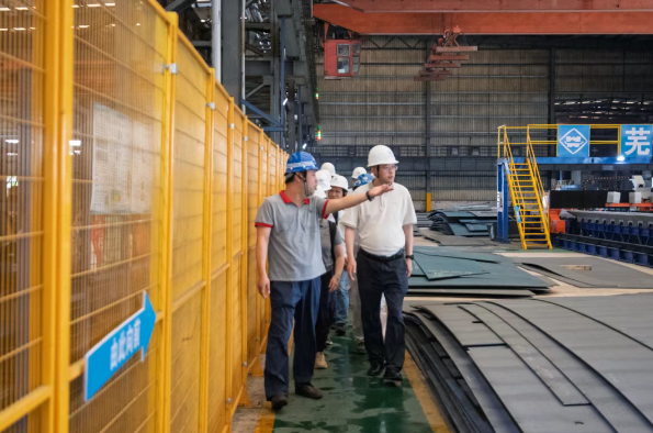 6月24日,中國船舶工業(yè)行業(yè)協(xié)會(簡稱“中國船協(xié)”)秘書長李彥慶一行赴安徽蕪湖開展調(diào)研,走訪蕪湖造船廠、新遠船廠、三點水新能源科技有限公司等公司,了解企業(yè)生產(chǎn)經(jīng)營、綠色發(fā)展、數(shù)智轉(zhuǎn)型等情況,中船集團、外高橋造船、上海船舶工藝研究所、史河科技、字節(jié)跳動等會員單位和科技公司一同參加調(diào)研。安徽省船舶工業(yè)行業(yè)協(xié)會會長、蕪湖造船廠董事長張釗,蕪湖造船廠首席戰(zhàn)略顧問兼海智研究院院長陳強,安徽省船舶工業(yè)行業(yè)協(xié)會秘書長、三點水新能源董事長鄭天保等企業(yè)負責(zé)人陪同調(diào)研。